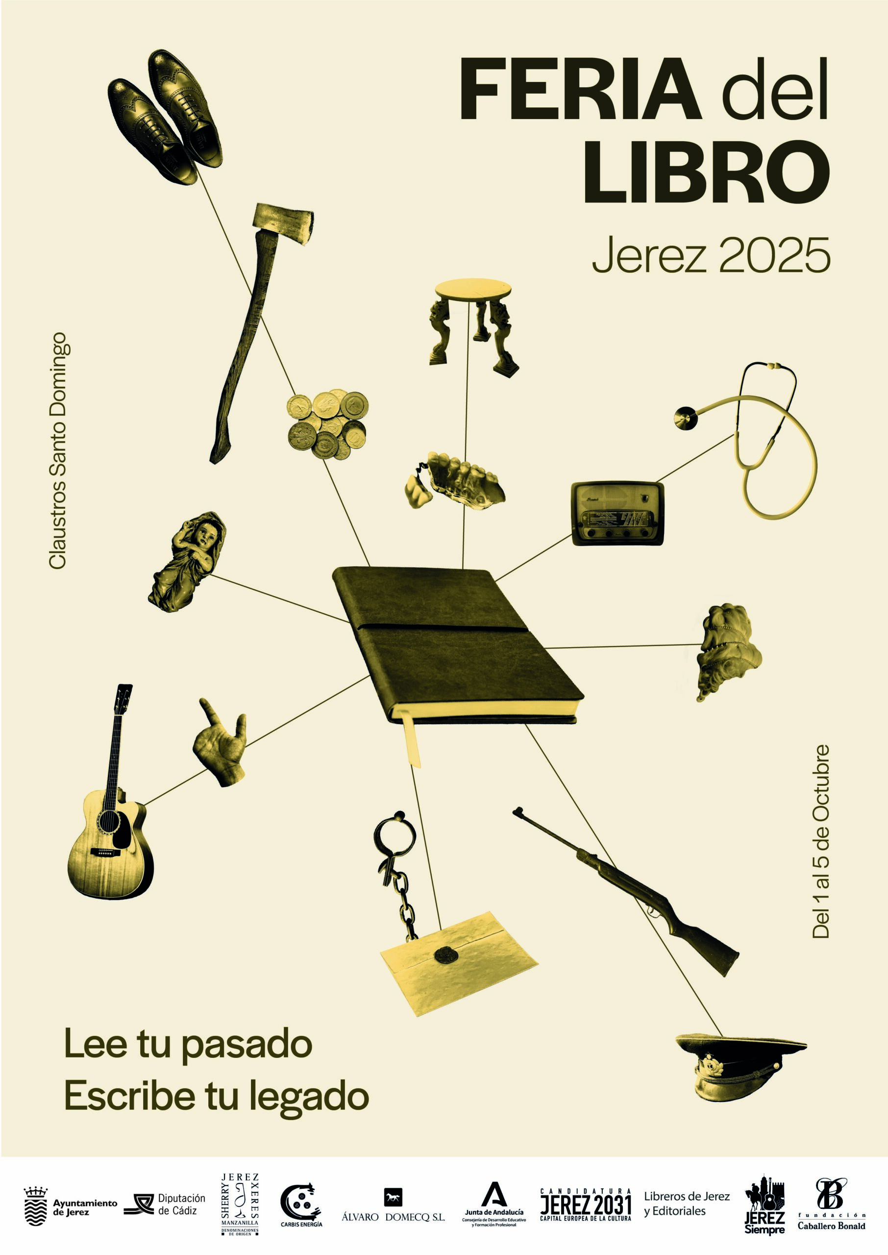 Cartel diseñado para el Ayuntamiento de Jerez dentro de la campaña de la Feria del Libro 2025. El concepto central, “Vivir una tradición para construir un legado”, se expresa mediante el slogan “Lee tu pasado. Escribe tu legado.”, que conecta emoción y cultura a través de la lectura y la escritura. La pieza utiliza el collage como técnica principal, inspirada en La casa de los espíritus de Isabel Allende, con una estética simbólica y dinámica. Los tonos cálidos, la tipografía sans serif y la composición en Z construyen una imagen clara, evocadora y cargada de significado.