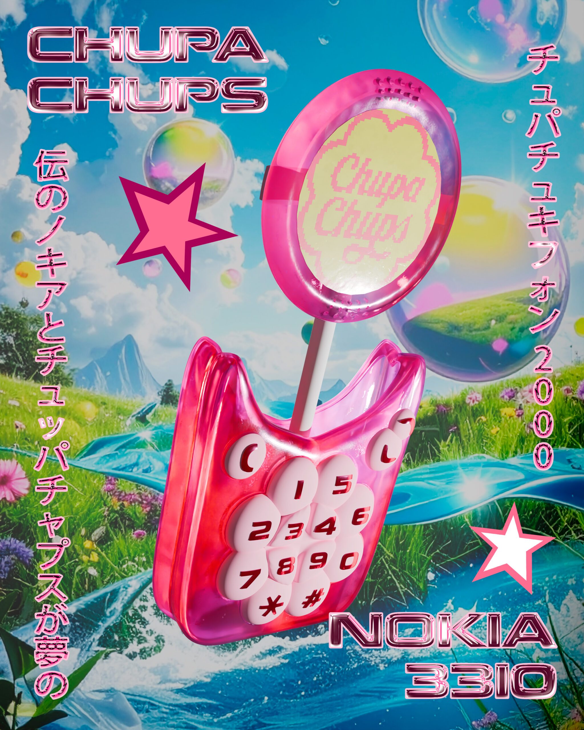 Proyecto de diseño 3D que combina la icónica forma del Nokia 3310 con la estética de la marca Chupa Chups, creando un teléfono con forma de piruleta. La propuesta juega con la nostalgia y el humor, reinterpretando un clásico de la tecnología dentro de un universo visual pop y reconocible.